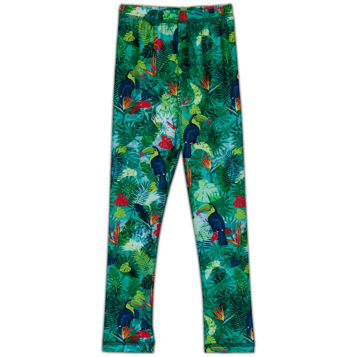 Be the noisiest specie on the beach with this bold and beautiful tangle mass of foliage in the best shape of nature. The Jungle Kids Leggings Hybrid and UPF 50+ in this creatively crafted pattern is just for them. Supported by the athleisure trend permits them to wear this legging anytime. Like, such as activewear pants for school or a playdate at the park or surf pants for a swimwear look at the beach or pool. Full-length sun coverage game plan for time-saving sunscreen application anytime. Mixed or layered, the options are endless for indoor or outdoor fun because leggings go with everything and they go places. Chemical-free UPF 50+ rating will protect her legs from UV sun rays, skin irritations from hot and rough surfaces, and all elements whether at the pool, beach, or park. Quick-dry properties will keep her cozy anywhere. Multifunctional performance for girls 2-6 years old. Easy to care for laundering guidelines.